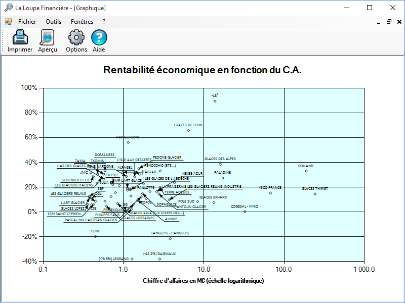 Graphique de la rentabilité économique en fonction du CA